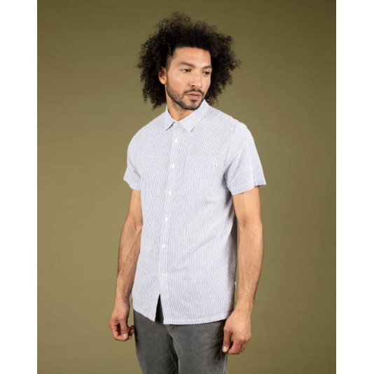 Wemoto SS Shirt Fork Seersucker | Navy Blue-White