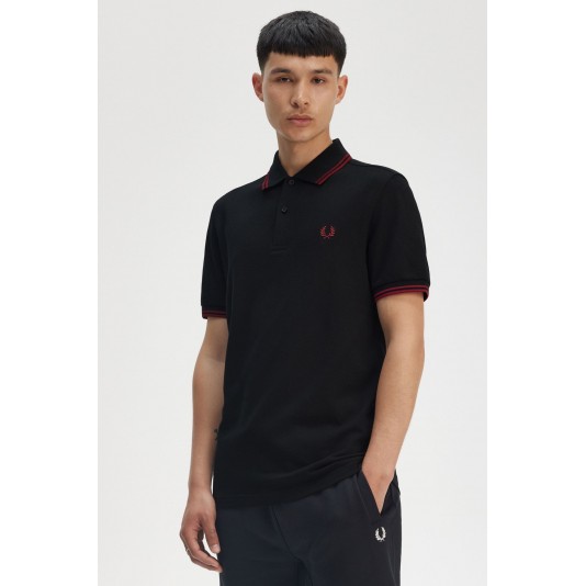 Fred Perry Polo T-Shirt | Black/Burnt Red